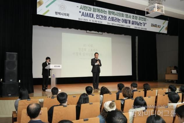 시민행정신문 기자 | 평택시의회는 12월 18일, 평택시 남부문화예술회관 소공연장에서 명사를 초청해‘AI시대, 인간의 스토리는 어떻게 살아남는가’를 주제로 강연회를 열었다.