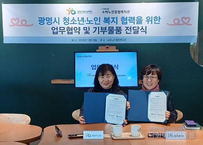 시민행정신문 강갑수 기자 | 12월 18일 광명시청소년재단과 소하노인종합복지관은 광명 지역 내 세대 통합 복지 협력체계 구축을 위해 ‘청소년·노인 복지 협력 업무협약’을 체결했다.