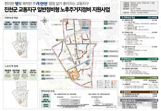 충북 도내 군 단위에서 유일하게 선정된 결과로 총 297억원(국비 150억, 지방비 146억 등)을 투입해 오는 2030년까지 교동지구의 노후 기반시설을 전면적으로 정비하고, 주민 생활편의 증진을 위한 다양한 사업을 추진한다.