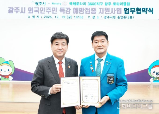 시민행정신문 강갑수 기자 | 광주시와 국제로타리 3600지구 광주 로타리클럽은 19일 외국인 주민의 건강 보호와 독감 예방을 위한 ‘외국인 주민 독감 예방접종 지원사업’ 추진에 관한 업무협약(MOU)을 체결했다.