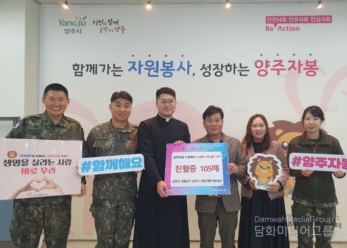 시민행정신문 강갑수 기자 | 양주시자원봉사센터는 천주교 군종교구 오뚜기 성당(제8기동사단) 오형훈 군종신부와 군 장병들이 연말을 맞아 헌혈증 105장을 기부했다고 밝혔다.