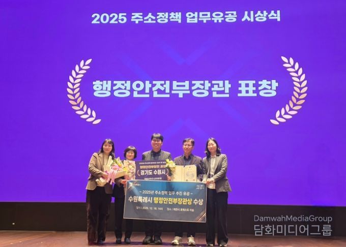 시민행정신문 강갑수 기자 | 수원특례시가 행정안전부 주관 ‘2025 주소정책 워크숍’에서 ‘2025 주소정책 업무 분야 우수기관’으로 선정돼 행정안전부 장관 표창을 받았다. 특별교부세 4000만 원도 확보했다.