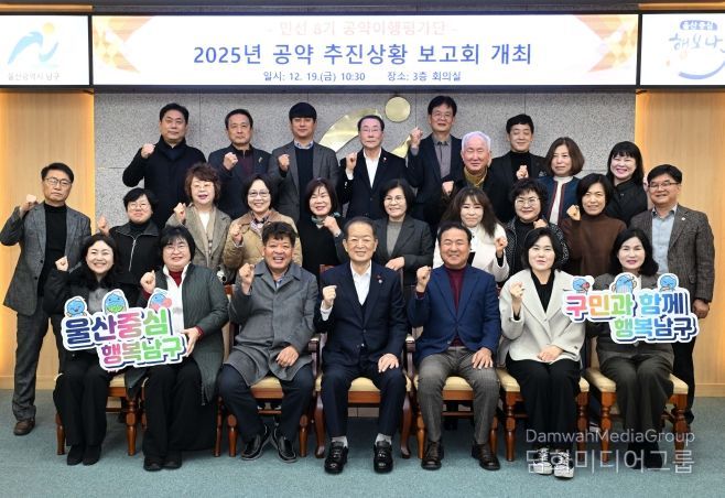 시민행정신문 강갑수 기자 | 울산 남구는 19일 ‘민선 8기 공약이행평가단 2025 공약 추진상황 보고회’를 열고 민선 8기 공약사업의 현주소 점검과 함께 향후 계획을 확인했다.