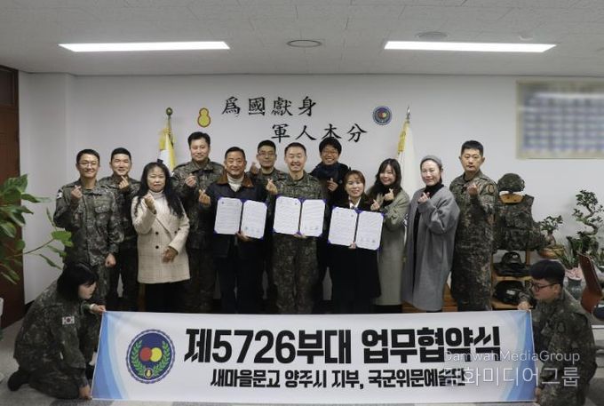 시민행정신문 강갑수 기자 | 새마을문고 양주시지부는 지난 12월 19일, 육군 제5726부대에서 군 장병들의 독서문화 확산과 인문학적 소양 증진을 위한 업무협약(MOU)을 체결했다고 밝혔다.