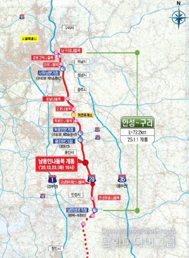 안성~용인~구리 구간(72.2㎞)은 1월 1일 개통됐다. 이 가운데 처인구 모현읍에서 원삼면까지 용인을 남북으로 관통하는 구간의 길이는 26㎞다. 포천~구리 구간(44.6㎞)은 지난 2017년 개통됐고, 안성~세종 구간(59.5㎞)은 2026년 말 개통 예정이다.