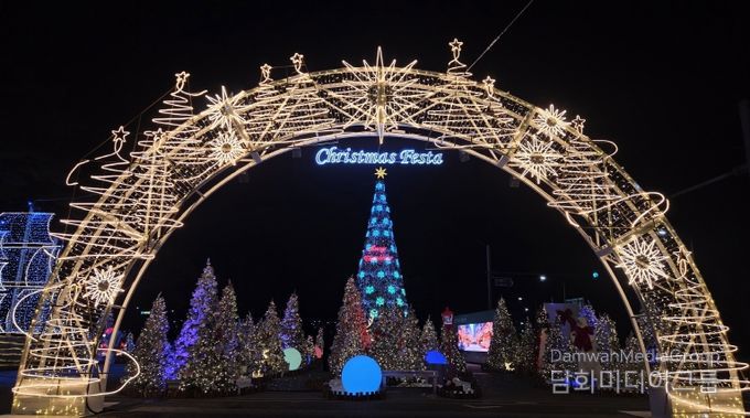 계양아라온 북단에서는 내년 1월 30일 까지 ‘크리스마스페스타’가 열린다. 화이트 트리마을을 테마로한 이곳에는 높이 14m의 메인 트리를 중심으로 트리 군락과 불빛 조형물, 포토존이 조성돼 낭만적인 겨울 풍경을 연출한다. 트리마을을 따라 걷다보면 자연스럽게 이어지는 ‘계양아라온 빛의 거리’에서 상설 야간경관도 함께 즐길 수 있다. 계양대교 교각 아래 황어광장을 배경으로 펼쳐지는 미디어파사드와 수변을 따라 이어지는 미디어월, 야간조명과 불빛 조형물은 겨울밤을 더욱 화려하게 수놓는다.