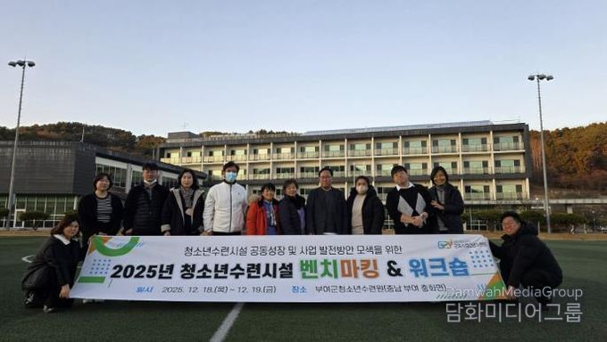 이번 벤치마킹 및 워크숍은 12. 18. ~ 12. 19., 1박2일 간 중부권 최대 규모(수용인원 400명)인 부여군청소년수련원(충남 부여 충화면 소재)에서 진행됐으며, 시설 답사, 모험·체험 프로그램, 홍보체계, 식당 운영 등을 확인하며 운영 방식과 실무 노하우 등을 공유하는 시간을 가졌다.
