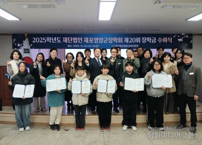 시민행정신문 기자 | 경상북도영양교육지원청은 12월 24일 관내 초등학교 6명을 대상으로 재단법인 재포영양군장학회가 주관하는 2025학년도 재단법인 재포영양군장학회 제20회 장학금 수여식을 영양교육지원청 3층 대회의실에서 실시했다.