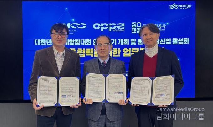 시민행정신문 강갑수 기자 | 인천관광공사(사장 유지상)와 대한민국국제합창대회 조직위원회(위원장 김희철), ㈜놀던오빠들(대표 김준호)은 26일 인천관광공사에서 ‘대한민국국제합창대회 인천 개최(2026년~2030년) 및 문화관광 활성화’를 위한 업무협약을 체결했다.