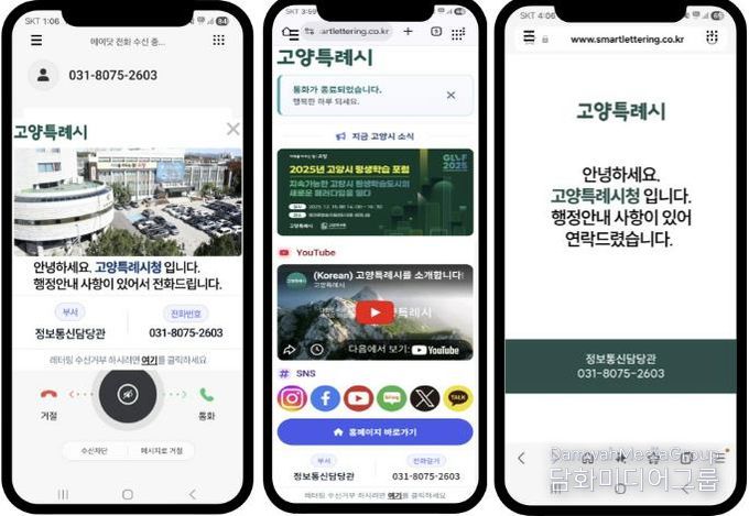 시민행정신문 강갑수 기자 | 고양특례시는 ‘거점형 스마트 조성 사업’의 일환으로 행정전화에 대한 시민 신뢰도를 높이고 민원 응대 효율을 개선하기 위해 ‘스마트 레터링 서비스'를 구축했다고 26일 밝혔다.