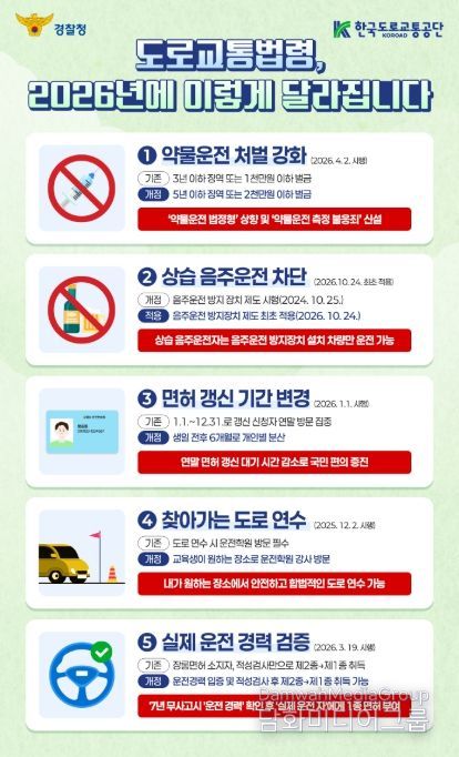 또한, 상습적인 음주운전 행위를 근절하고자, 최근 5년 내 2회 이상 적발된 위반자가 결격 기간 종료 후 면허를 재취득하면 차량에 ‘음주운전 방지장치’를 부착해야만 차량 운전이 가능한 조건부 면허 제도를 2026년 10월부터 본격적으로 시행한다.
