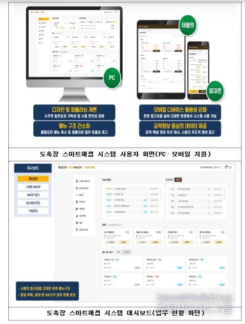 농림축산식품부 김홍태 농축산위생품질팀장은 “도축장은 축산물 안전관리의 출발점으로, 스마트해썹 시스템 도입을 통해 생산단계 위생관리의 디지털 전환이 본격화될 것”이라며, “전국 도축장에서 데이터 기반의 체계적 관리가 이루어질 수 있도록 지속적인 확산을 추진하겠다”고 밝혔다.