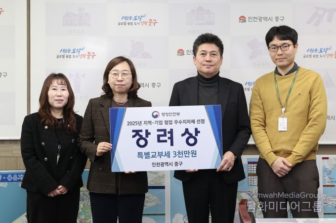 시민행정신문 강갑수 기자 | 인천시 중구는 ‘호텔객실리사 양성 교육’을 성공적으로 운영하며, 행정안전부 주관 ‘2025년 지역-기업 협업 우수사례 공모’에서 장려상을 받았다고 31일 밝혔다. 이번 수상으로 ‘특별교부세 3천만 원 확보’ 성과도 함께 거뒀다.