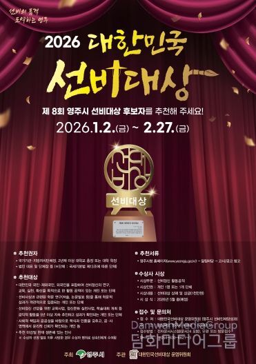 시상식은 5월 개최 예정인 2026영주 한국선비문화축제 기간 중 열리며, 수상자에게는 상패와 함께 상금 1,000만 원이 수여된다.