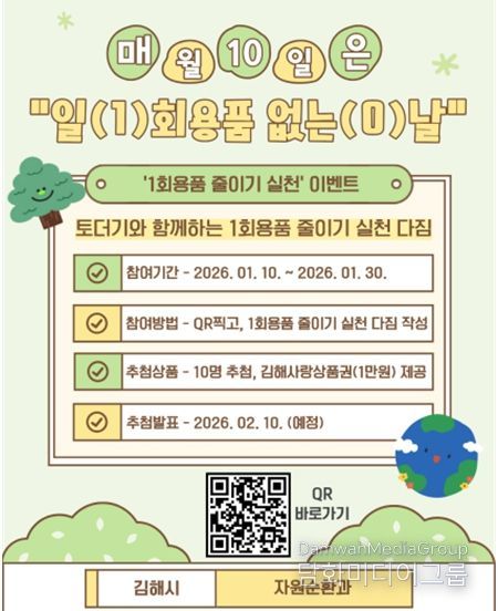 김해시 공식 SNS에서 자원순환 정책과 1회용품 줄이기 실천 방법을 소개하고, 퀴즈 참여자 중 10명을 추첨해 김해사랑상품권 또는 친환경 제품을 제공한다.