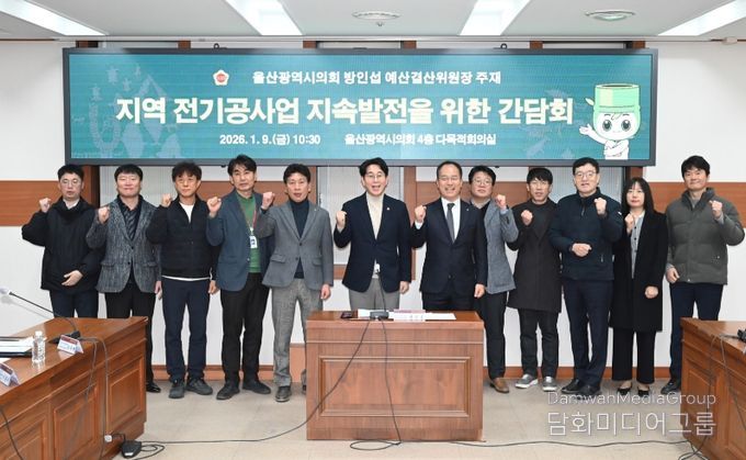 방인섭 울산광역시의회 예산결산위원장은 9일 오전 시의회 다목적회의실에서 한국전기공사협회 울산광역시회 회원업체 대표들과 ‘지역 전기공사업 지속 발전을 위한 간담회’를 열고, 전기공사 현장 애로사항 해소 및 제도 개선 방향을 논의했다.