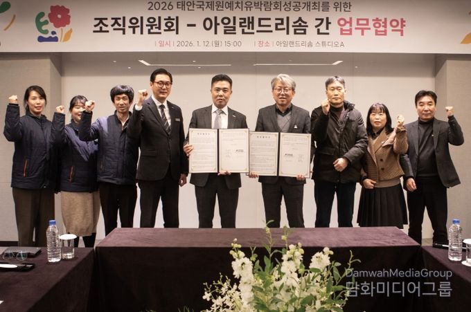 시민행정신문 강갑수 기자 | 태안국제원예치유박람회 조직위원회는 1월 12일 태안군 안면읍 아일랜드 리솜에서 조직위와 아일랜드 리솜이 업무협약을 체결했다고 밝혔다.