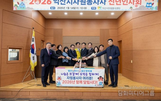시는 14일 송학동 행정복지센터 대회의실에서 '2026년도 익산시 자원봉사자 신년인사회'를 개최하고, 자원봉사자들과 함께 새해 자원봉사 실천 의지를 다졌다.