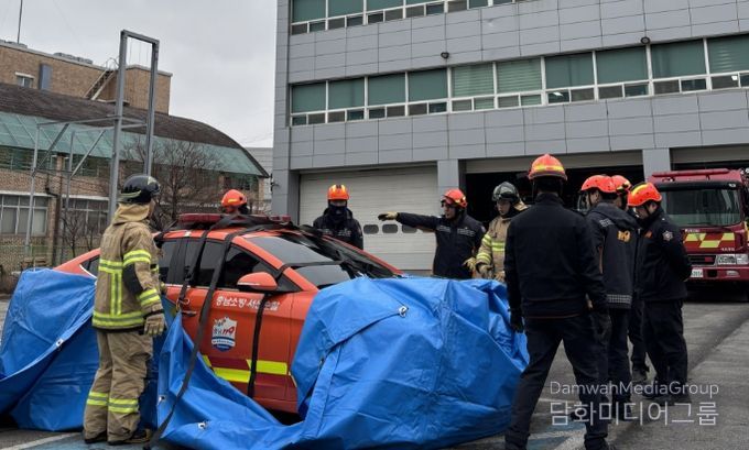 이번 훈련은 연료가 기름에서 리튬이온 배터리로 전환된 전기차 화재의 특성에 맞춰, 기존 차량 화재와 다른 대응 전략을 숙달하는 데 중점을 두고 진행됐다.