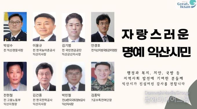 이번에 명예시민으로 선정된 이들을 행정, 치안, 복지, 국방 등 다양한 분야에서 익산시와 긴밀히 협력하며 지역사회 발전에 기여한 인물들이다.