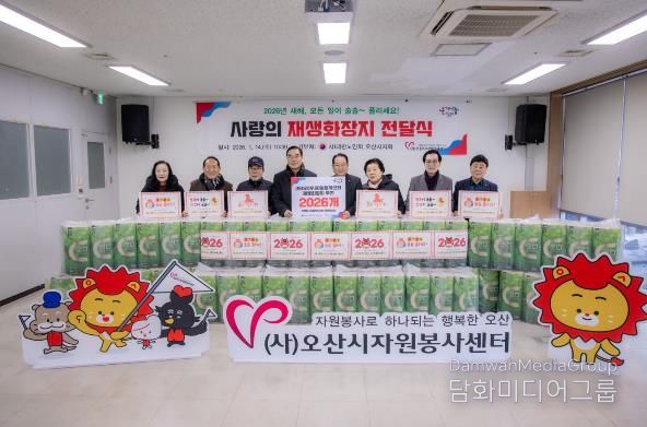 시민행정신문 강갑수 기자 | (사)오산시자원봉사센터는 지난 14일, 2026년 새해를 맞아 (사)대한노인회 오산시지회에 재생화장지 2,026롤을 전달했다고 밝혔다.