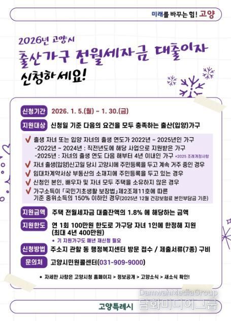 이동환 고양특례시장은 “아이를 키우는 것은 한 가정의 책임이 아니라 공동체의 미래를 세우는 중요한 과제”라며 “더 많은 가정이 양육의 무게를 덜고 아이를 키우는 기쁨을 누릴 수 있도록 정책적 지원을 아끼지 않겠다”고 말했다.