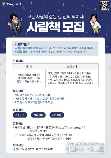 박승원 광명시장은 “사람책도서관은 시민 한 사람 한 사람의 삶을 지역의 소중한 지식 자산으로 연결하는 의미 있는 학습 플랫폼”이라며 “시민들이 서로의 역량을 발견하고 나누는 선순환 구조를 만들어, 시민이 주도하는 평생학습 도시 광명을 실현해 나가겠다”고 밝혔다.