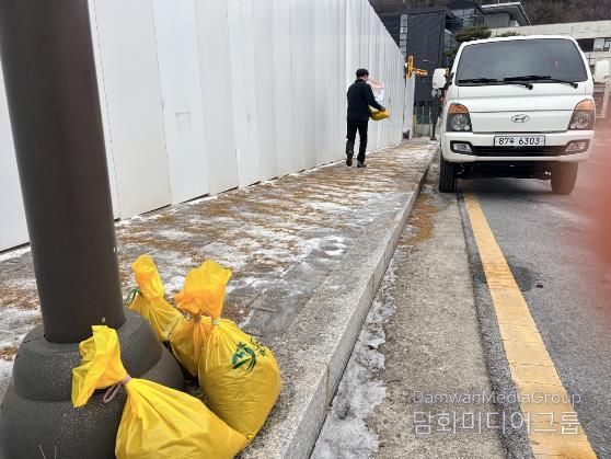 또한, 상시 관리가 어려운 음지 구간에는 인근 주민들이 필요시 사용할 수 있도록 모래주머니와 염화칼슘을 비치했고 제설차량을 활용한 작업 구역도 확대하도록 조치했다.
