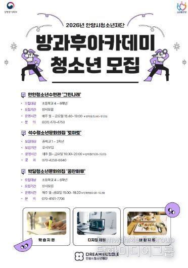 시민행정신문 강갑수 기자 | 안양시청소년재단은 공공 청소년 돌봄 사업인 청소년방과후아카데미의 2026년도 참여 청소년을 모집한다.