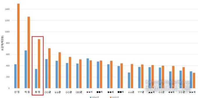 시민행정신문 강갑수 기자 | 통영시의 2025년 고향사랑기부금 모금액이 8억 6천만 원을 돌파해 경남 지역 모금액 3위를 차지했다고 19일 밝혔다.