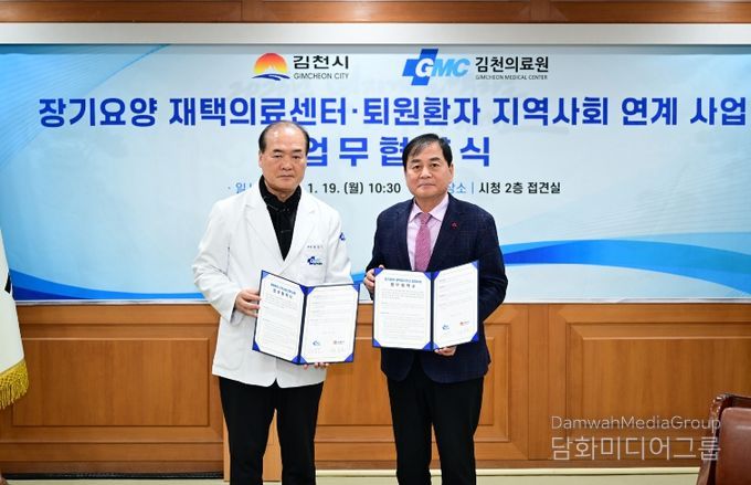 시민행정신문 강갑수 기자 | 김천시는 1월 19일 김천의료원과 함께 ‘장기요양 재택의료센터 시범사업’과 ‘퇴원환자 지역사회 연계 사업’ 추진을 위한 업무협약을 체결했다.
