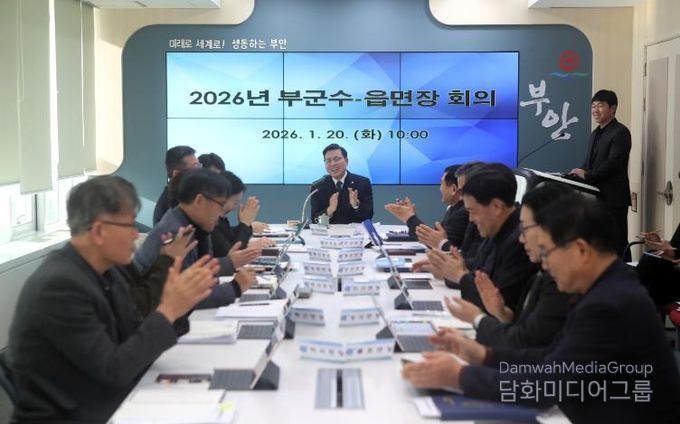 시민행정신문 강갑수 기자 | 부안군은 20일 군청 3층 중회의실에서 정화영 부군수 주재로 2026년 부군수-읍·면장 회의를 개최하고 2025년 주요 성과와 2026년 군정 운영방향을 공유하며 읍·면 현안에 대한 사전 점검에 나섰다고 밝혔다.