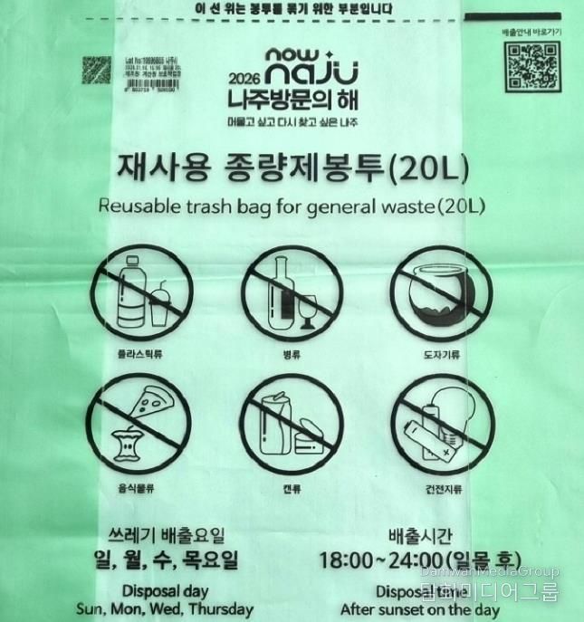 나주시는 시민들이 일상적으로 사용하는 생활 쓰레기 종량제봉투를 매개로 ‘2026 나주 방문의 해’와 지역의 매력을 지속적으로 알릴 수 있을 것으로 기대한다.