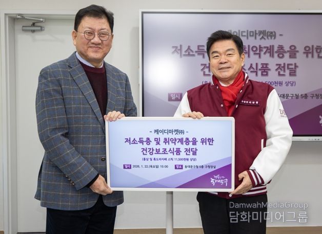 시민행정신문 강갑수 기자 | 동대문구는 22일 오후 3시 케이디마켓 주식회사(대표 최영수)가 저소득층 및 취약계층을 위한 1,150만 원 상당의 건강기능식품 500세트를 기탁했다고 밝혔다.