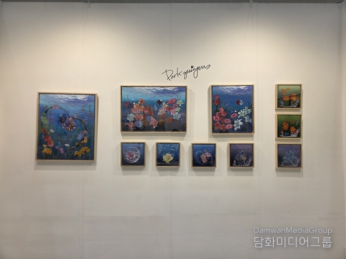 박귀연작가는 생명의 탄생과 자유로움을 주제로 한 혼합매체 작품으로 많은 관람객들의 주목을 끌고 있다.