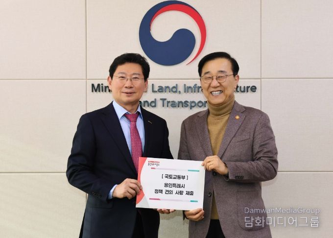 이 시장은 이날 용인특례시와 광주시 등 경기도·충청도 7개 시·군이 공동 추진하는 ‘중부권광역급행철도(JTX) 조기 추진을 위한 공동건의문’을 김 장관에게 전달한 뒤 용인에서 추진하거나 진행 중인 주요 현안에 대한 국토교통부 도움을 요청했다.