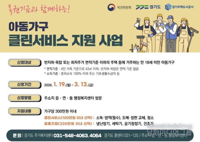 시민행정신문 강갑수 기자 | 부천시는 주거취약 아동의 건강한 성장과 주거권 보호를 위해 ‘2026년 아동가구 클린서비스 지원사업’을 복권기금과 함께 추진한다고 27일 밝혔다.