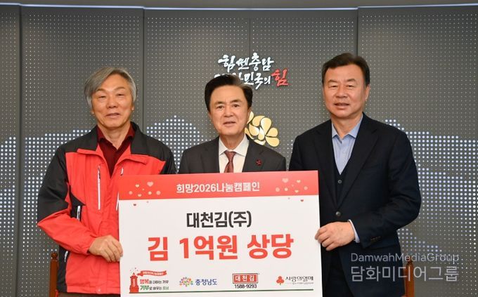 이날 도지사 외부접견실에서 열린 전달식에는 김태흠 지사를 비롯해 최민순 대천김 총괄대표, 성우종 충남사회복지공동모금회장 등이 참석해 나눔의 의미를 함께했다.