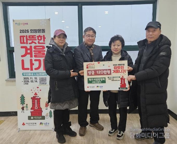 김범철 성수2가제1동장은 “경기 침체 속에서도 이웃을 위한 나눔을 실천해 주신 뚝도시장번영회에 깊이 감사드린다”라며 “성금은 희망온돌 따뜻한 겨울나기 사업을 통해 관내 저소득 취약계층을 위해 소중히 사용하겠다”라고 말했다.