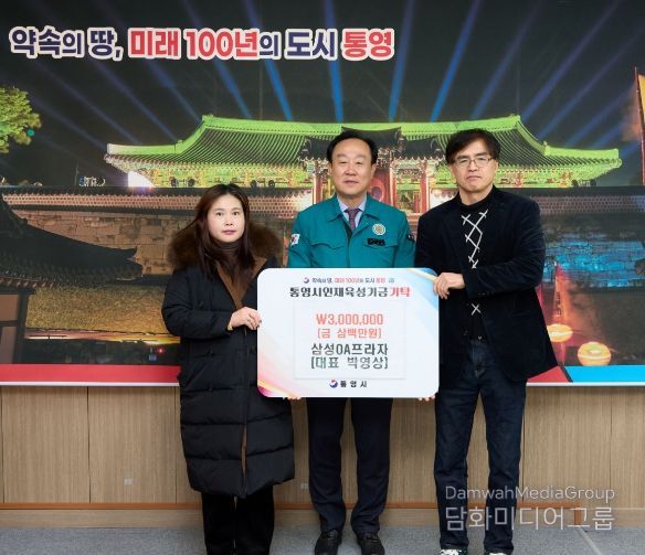 시민행정신문 강갑수 기자 | 삼성OA프라자(대표 박영상)는 지난 27일 통영시에 인재육성기금 300만 원을 기탁했다.