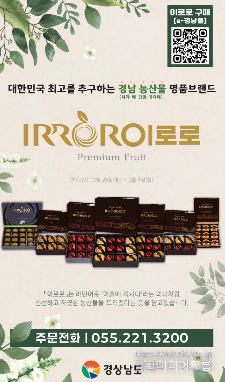 시민행정신문 이세훈 기자 | 경상남도는 설 명절을 맞아 2월 9일까지 경남 명품과일 ‘이로로’ 선물 세트 특판을 진행한다고 밝혔다.