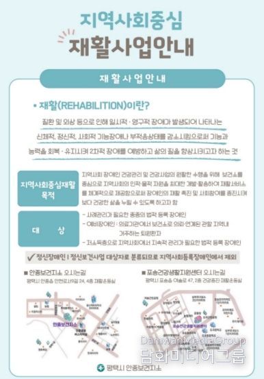 시민행정신문 기자 | 평택시 안중보건지소는 법적 등록 장애인과 예비장애인(손상이나 질병 발생 후 완전한 회복이 어려워 일정 기간 내 장애인이 될 것으로 예상되는 자) 및 지역 주민을 대상으로 체계적이고 전문적인 재활서비스 제공을 위해 재활운동실 운영과 지역사회 중심 재활사업을 추진하고 있다.