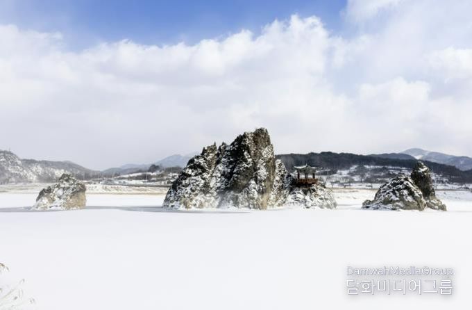 남한강 한가운데 솟은 세 봉우리에 눈이 내려앉는 순간, 가장 단양다운 풍경이 완성된다.