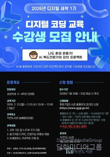 시민행정신문 강갑수 기자 | 인천 계양구 작전도서관은 겨울방학을 맞아 디지털 코딩 교육 프로그램 '디지털 새싹 1기'를 운영한다고 밝혔다.