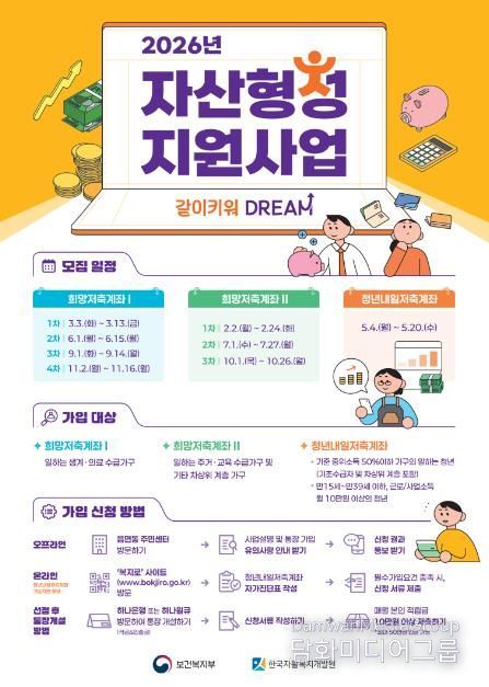 시민행정신문 강갑수 기자 | 서울 용산구가 저소득층의 자립을 돕기 위한 ‘희망저축계좌Ⅱ’ 통장 2026년 1차 신규 가입자를 24일까지 모집한다. 신청 접수는 2일부터 개시했다.