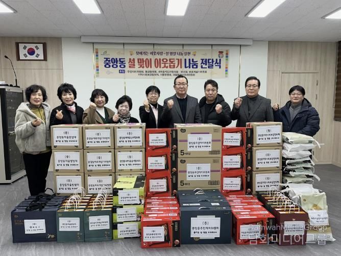중앙동 관계자는 “매년 명절마다 변함없는 나눔을 실천해 주시는 직능단체와 지역주민 여러분께 감사드린다”며 “보내주신 주신 물품은 어려운 이웃들에게 소중히 전달해 따뜻한 명절을 보낼 수 있도록 하겠다”고 전했다.