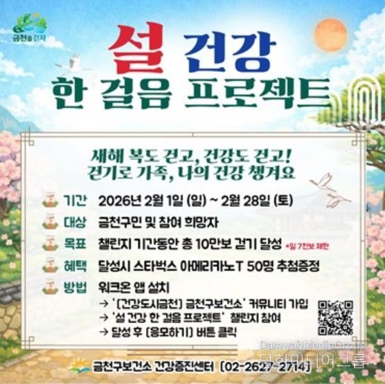유성훈 금천구청장은 “걷기를 통해 생활 리듬을 회복하고, 일상 속 건강관리의 중요성을 체감하는 계기가 되길 바란다”라며 “앞으로도 지역주민들이 부담 없이 참여할 수 있는 생활밀착형 건강사업을 통해 건강도시 금천을 지속적으로 만들어 나가겠다”라고 말했다.