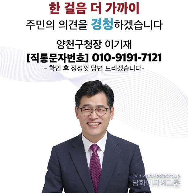 직접소통·현장중시·혁신행정을 구정 운영의 핵심 가치로 내세워온 이기재 양천구청장은 2022년 8월 개인 휴대전화 번호를 공개하며 ‘구청장 직통 문자 민원 서비스’를 도입했다.