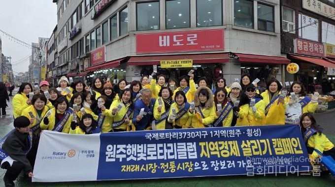 이날 원주햇빛로타리클럽 회원 50여 명은 전통시장에서 식료품과 생필품 등을 직접 구매하며 지역 상권 활성화에 힘을 보탰다. 또한 구매 물품 중 일부는 지역 내 취약계층 지원을 위해 전달하기로 했다.