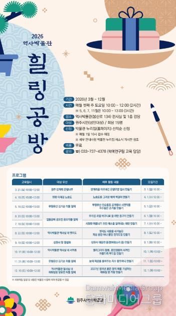시민행정신문 강갑수 기자 | 원주시역사박물관은 오는 3월부터 성인을 대상으로 한 유물 연계 교육프로그램 ‘2026년 역사박물관 힐링 공방’을 운영한다.